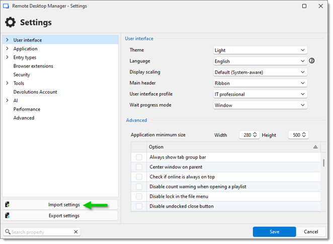 | Create a backup (.old) | Create a backup of the old RemoteDesktopManager.cfg. |