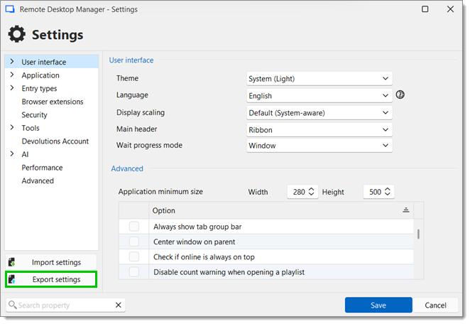 Dans Remote Desktop Manager, aller à Fichier – Paramètres.